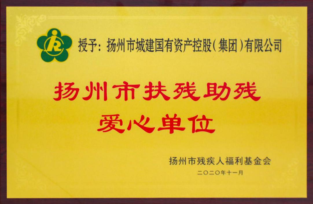 12月2日,在第29個“國際殘疾人日”到來之際,城控集團(tuán)被揚(yáng)州市殘疾人福利基金會表彰為“2020年扶殘助殘愛心單位”,這是城控集團(tuán)在履行社會責(zé)任、關(guān)愛弱勢群體工作中獲得的又一項(xiàng)榮譽(yù)。