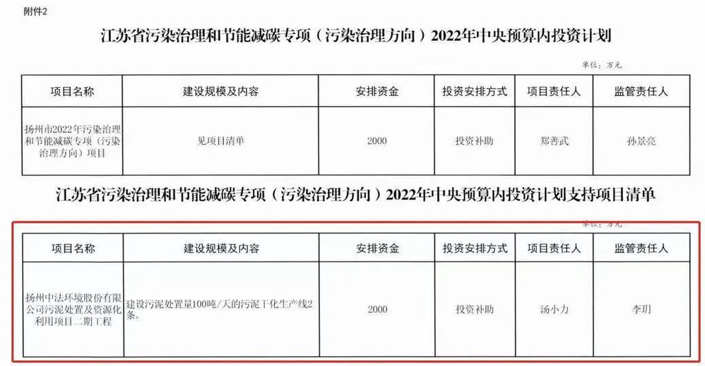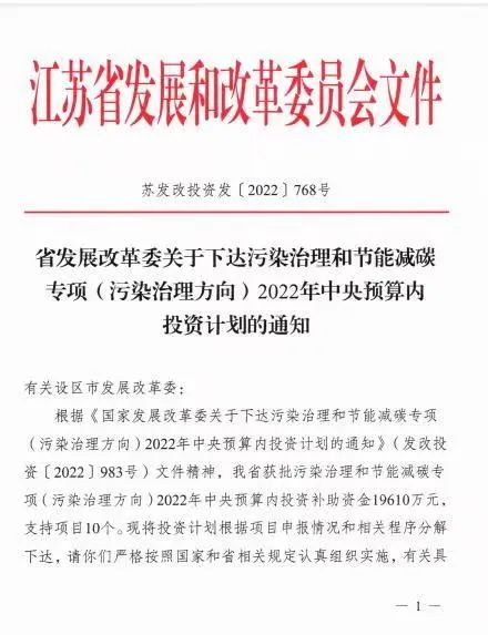 近日,中法環(huán)境收到江蘇省發(fā)展和改革委員會下發(fā)的《關于轉發(fā)下達污染治理和節(jié)能減碳專項(污染治理方向)2022年中央預算內投資計劃的通知》(發(fā)改投資【2022】983號),中法環(huán)境污泥處置及資源化利用二期項目獲得中央預算內投資補助資金2000萬元(占投資總額16%)。