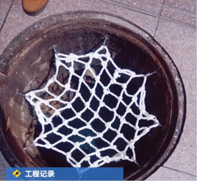 防墜網(wǎng)是加裝在井蓋下方的網(wǎng)兜,而本輪要加裝的防墜網(wǎng)是承重可達(dá)500公斤、耐腐蝕、耐磨、防斷裂的高強(qiáng)度尼龍網(wǎng),它將和緊緊勾住網(wǎng)兜的8個(gè)鐵鉤共同組成檢查井內(nèi)的第二道生命防線,一旦井蓋被破壞或頂開,防墜網(wǎng)便會(huì)發(fā)揮作用,攔截或緩沖墜落物,避免或減輕可能帶來的傷害。