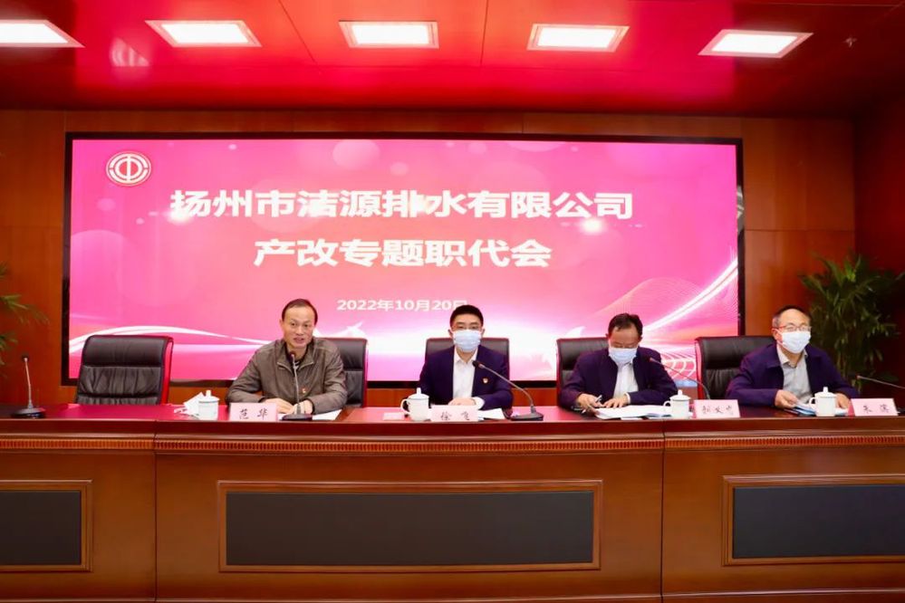 2022年10月20日上午,揚州市潔源排水有限公司在綜合樓501會議室召開了四屆五次工會會員(職工)代表大會,市城控集團(tuán)黨委副書記徐飛、市總工會建設(shè)工會主任范華、市城控集團(tuán)工會副主席朱濱、公司領(lǐng)導(dǎo)班子全體成員、會員(職工)代表和列席代表參加了會議。會議由公司黨總支書記、董事長劉義忠主持。