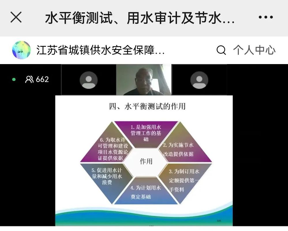 11月2日下午,江蘇省城鎮(zhèn)供水安全保障中心(省水中心)邀請江蘇省工程咨詢中心技術(shù)顧問、蘇州節(jié)能管理進修學(xué)院副院長姚芳龍,作“水平衡測試、用水審計及節(jié)水技術(shù)”直播報告。長江水務(wù)公司有關(guān)部門收看直播講座,進行在線學(xué)習(xí)。
