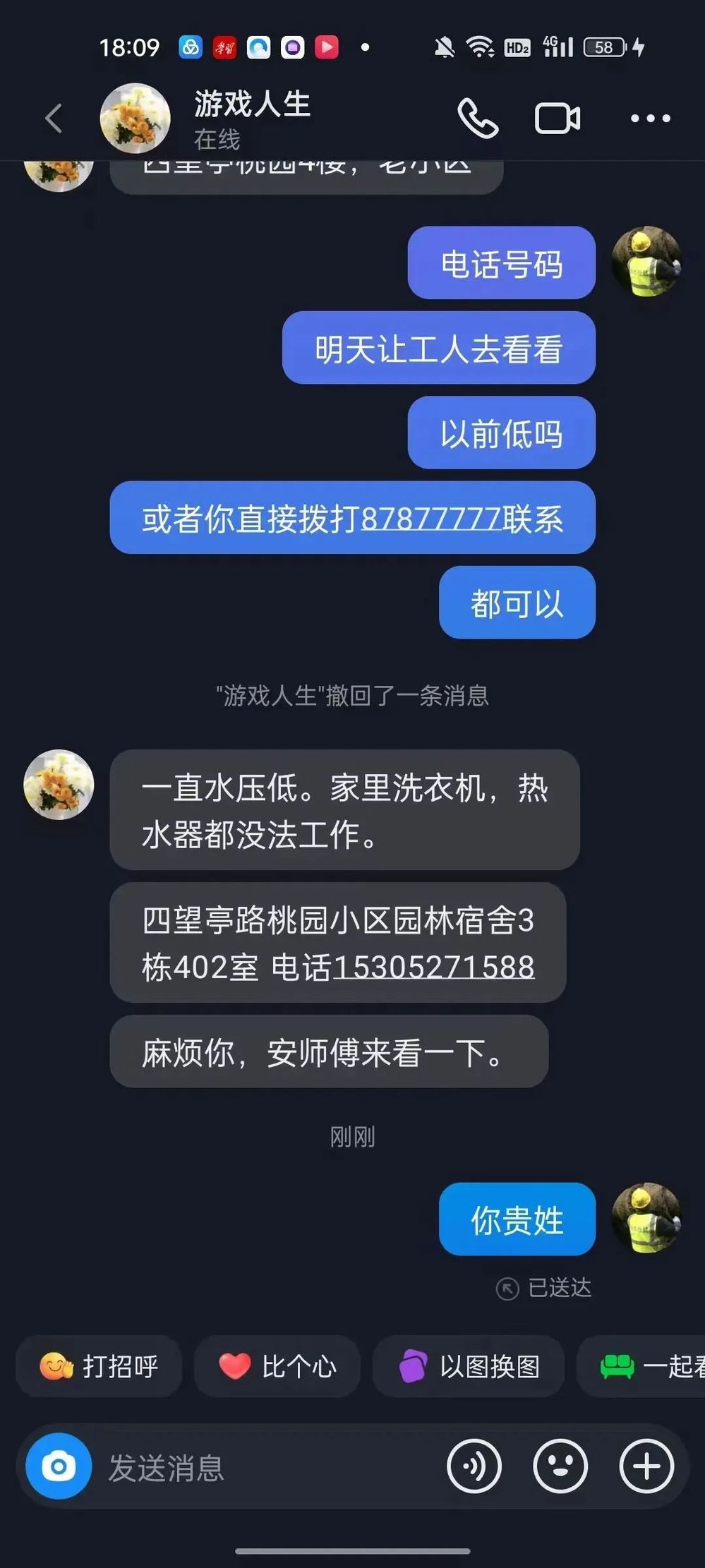 請把電話號碼留一下,我們派人工人去現(xiàn)場看一下,以前水壓低嗎?或者你直撥87877777聯(lián)系供水客服,都可以。