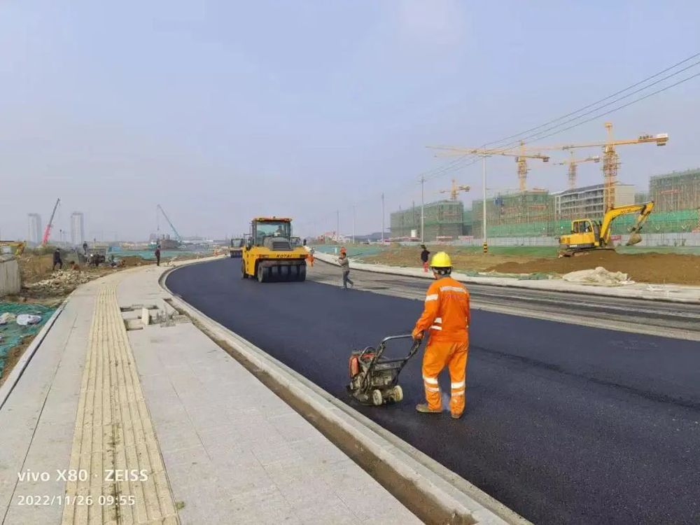 11月26日、27日,利用晴好天氣窗口,經(jīng)科學(xué)組織、合理調(diào)度,灣頭建新路、書安路一期工程瀝青砼攤鋪工作順利完成,瀝青砼的攤鋪為項(xiàng)目順利完工打下了堅(jiān)實(shí)的基礎(chǔ)。