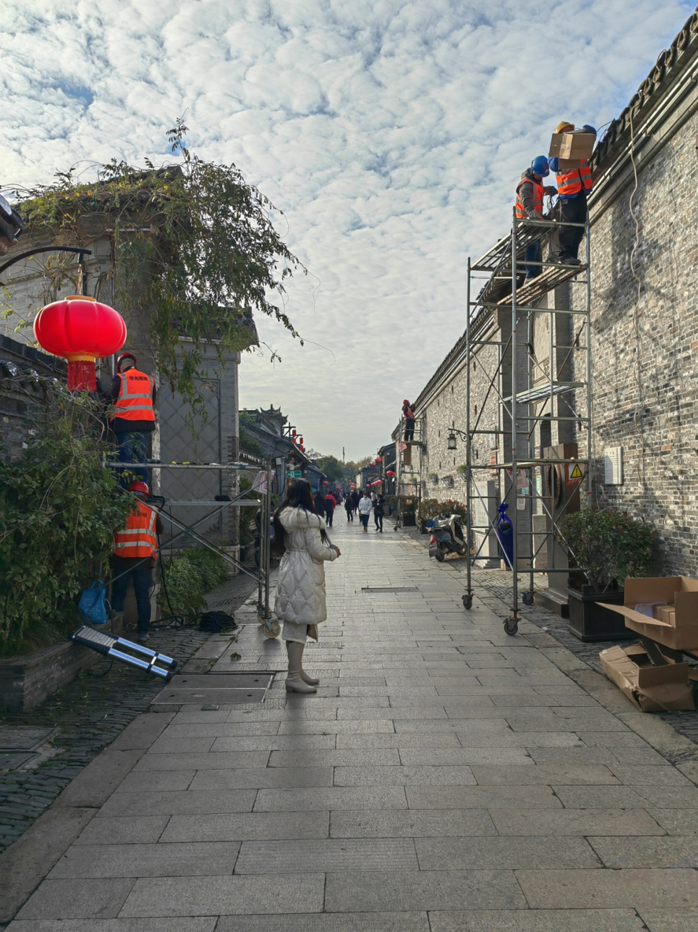 目前,東關街亮化提升工程已進入實施階段。自11月27日開工以來,名城公司在當前疫情形勢依然復雜嚴峻的情況下,利用目前旅游淡季、街區(qū)游客行人較少的契機,合理安排好每日的施工內(nèi)容,當日拆除原有亮化燈具,第一時間安裝新的照明燈具,確保晚間新安裝燈具通電使用。