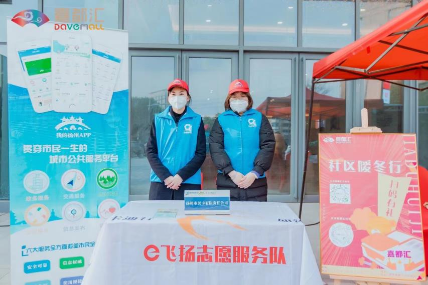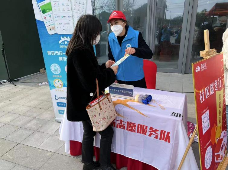 12月11日,為更好地弘揚(yáng)志愿服務(wù)精神,切實(shí)為市民們在這個(gè)寒冬送去溫暖,市民卡“e飛揚(yáng)”志愿服務(wù)隊(duì)在嘉都匯外廣場設(shè)置便民流動(dòng)服務(wù)點(diǎn),為前來參加揚(yáng)州嘉都匯大型招聘會(huì)的市民提供“零距離”服務(wù)。