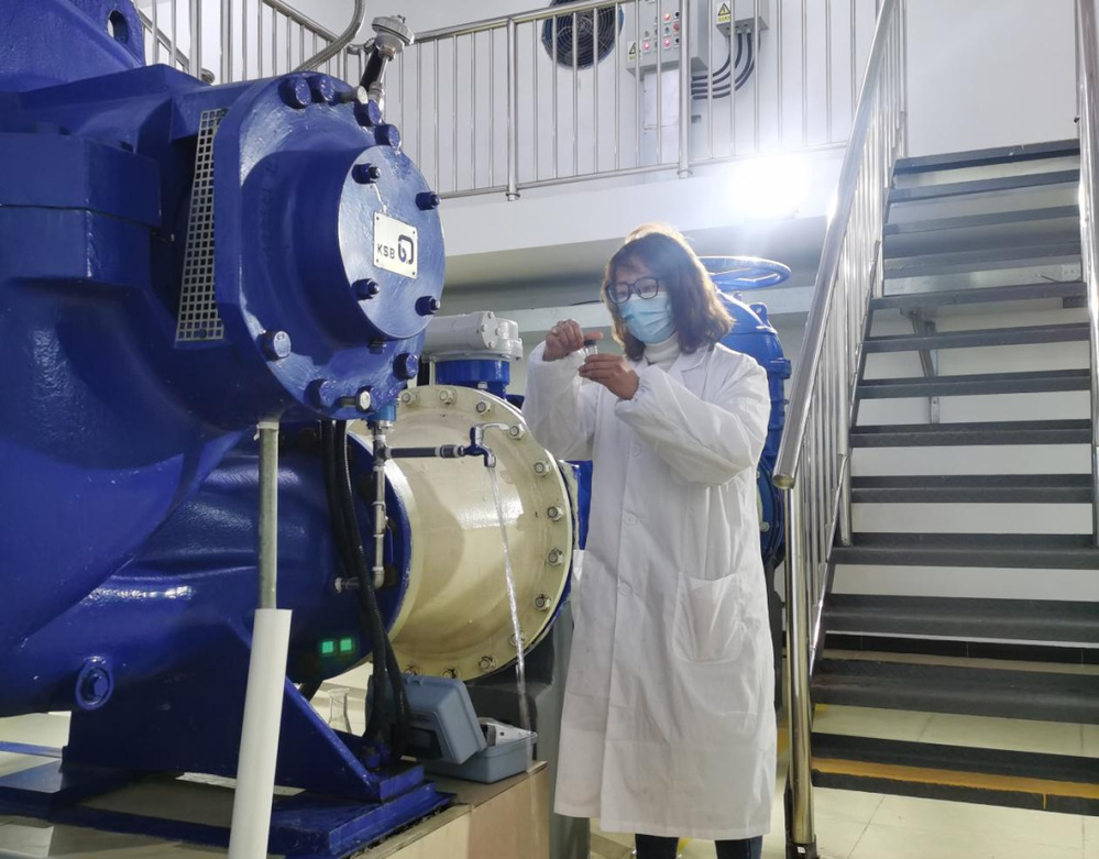 凌晨1點(diǎn),冒著零下6度的刺骨寒風(fēng),湖西水廠水質(zhì)檢測員任良慧戴著厚厚的口罩,來回于清水庫和輸水泵房之間,聚精會神地進(jìn)行水質(zhì)采樣、指標(biāo)檢測,盡管身邊機(jī)泵運(yùn)轉(zhuǎn)時(shí)不停發(fā)出隆隆響聲,但她絲毫不受影響。作為湖西水廠駐廠保供的唯一女性,任良慧與男同志一樣,每天 24小時(shí)吃住在廠里、“戰(zhàn)斗”在水質(zhì)檢測崗位。