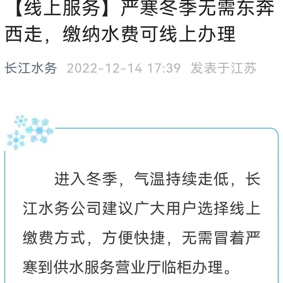 長(zhǎng)江水務(wù)公司積極推廣線上“云服務(wù)”,通過微信公眾號(hào)、企業(yè)微信平臺(tái)等宣傳渠道,倡議廣大用戶在辦理涉水業(yè)務(wù)時(shí)“非必要不臨柜”,可通過支付寶、微信、“我的揚(yáng)州”APP、網(wǎng)銀等多種方式,進(jìn)行繳費(fèi)或查詢業(yè)務(wù)?!八畡?wù)微管家”通過企業(yè)微信為用戶提供繳費(fèi)清單和電子發(fā)票,向用戶推送防凍保溫提醒、停水預(yù)告、水質(zhì)報(bào)告等服務(wù)資訊。讓用戶“足不出戶”就能辦理業(yè)務(wù)、掌握信息,同時(shí)及時(shí)受理并解決用戶反映的用水問題,做到“事事有回復(fù),件件能落實(shí)”。