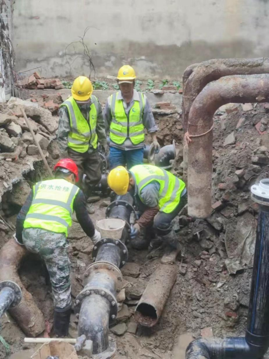 長(zhǎng)江水務(wù)第三黨支部“水網(wǎng)先鋒突擊隊(duì)”在此次搶修任務(wù)中擔(dān)當(dāng)工作骨干,他們平時(shí)每天24小時(shí)值守崗位,哪里有管道搶修,他們就出現(xiàn)在哪里!他們出動(dòng)及時(shí)處理得當(dāng),用了5個(gè)小時(shí)就完成閘門(mén)止水、土方開(kāi)挖、管道更換等工作,為小區(qū)居民恢復(fù)了供水。