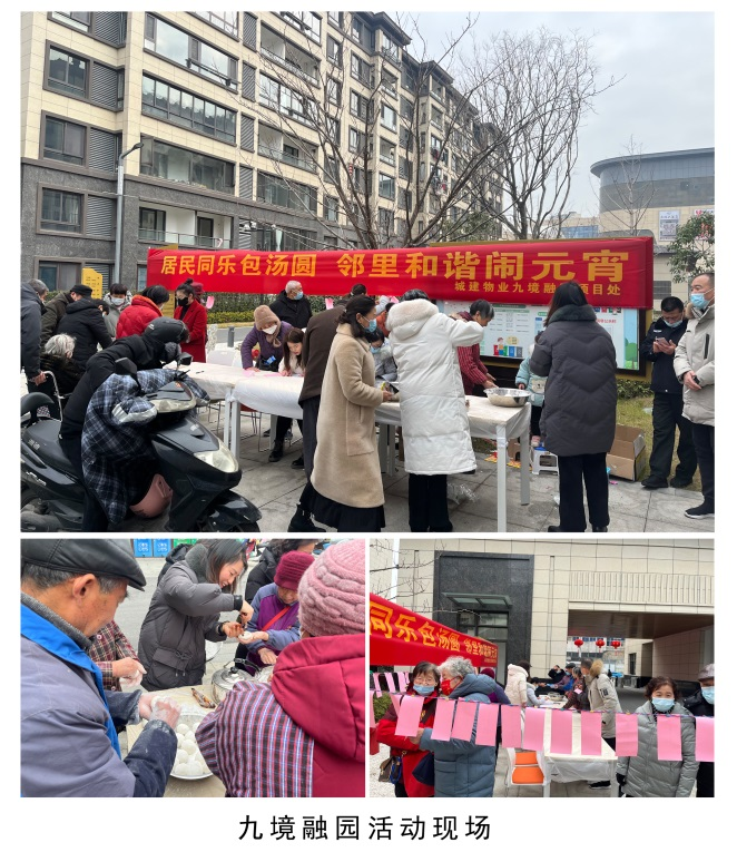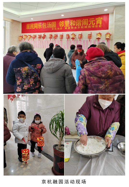 為豐富居民的文化生活,活躍節(jié)日氣氛,農(nóng)歷正月十五,城建物業(yè)公司以“居民同樂(lè)包湯圓 鄰里和諧鬧元宵”為主題在京杭融園小區(qū)、九境融園小區(qū)開(kāi)展了包湯圓、猜燈謎等元宵節(jié)活動(dòng),營(yíng)造濃厚的元宵節(jié)日氛圍。