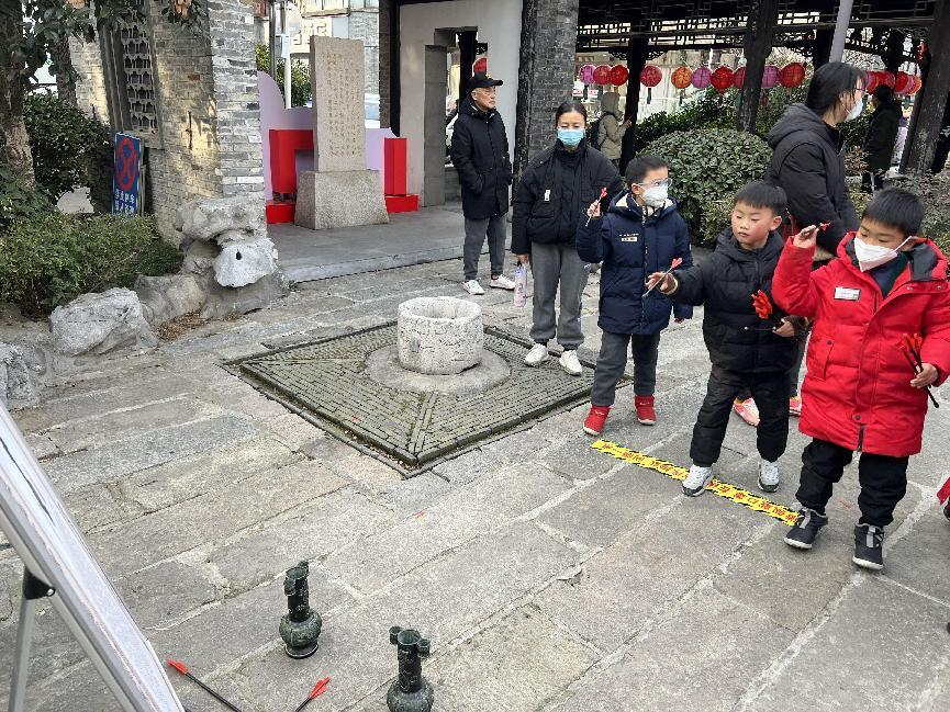 投壺,是從先秦延續(xù)至清末的中國(guó)傳統(tǒng)禮儀和宴飲游戲。“壺”與“?!敝C音,寓意著在新的一年福星高照、福氣臨門(mén)?;顒?dòng)現(xiàn)場(chǎng)各路高手紛紛上陣,歡笑不斷。