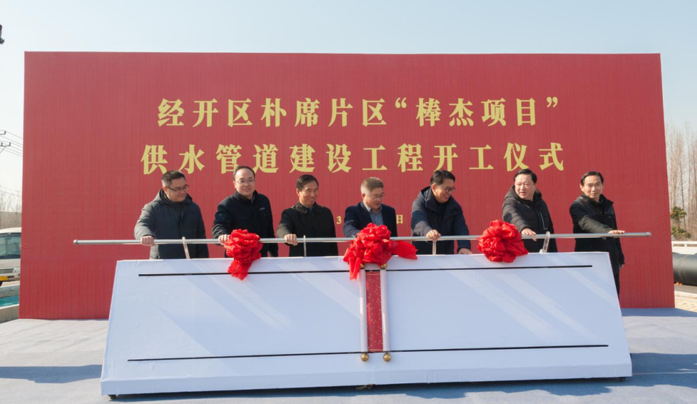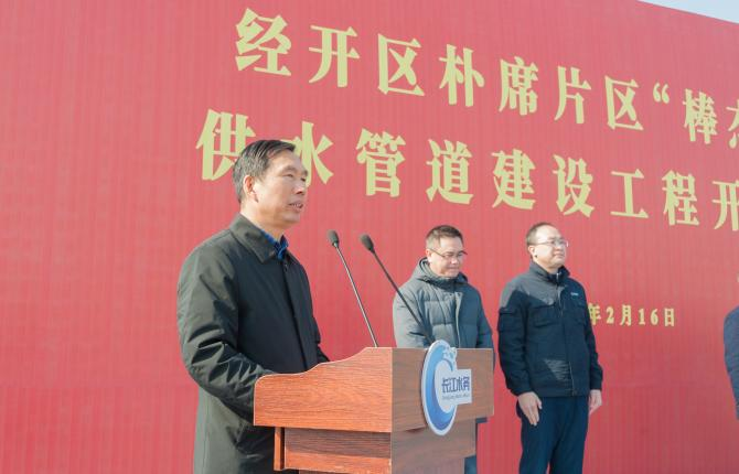 經(jīng)開區(qū)管委會(huì)副主任楊斌代表揚(yáng)州經(jīng)濟(jì)技術(shù)開發(fā)區(qū)黨工委、管委會(huì)致辭,他表示,實(shí)施樸席片區(qū)供水管道建設(shè)工程,不僅滿足了“棒杰項(xiàng)目”生產(chǎn)運(yùn)營的迫切需要,同時(shí)也完善了樸席片區(qū)水網(wǎng)格局的構(gòu)建,為未來樸席片區(qū)可持續(xù)發(fā)展奠定了基石,為經(jīng)開區(qū)“棒杰項(xiàng)目”的落戶提供了充分的保障。