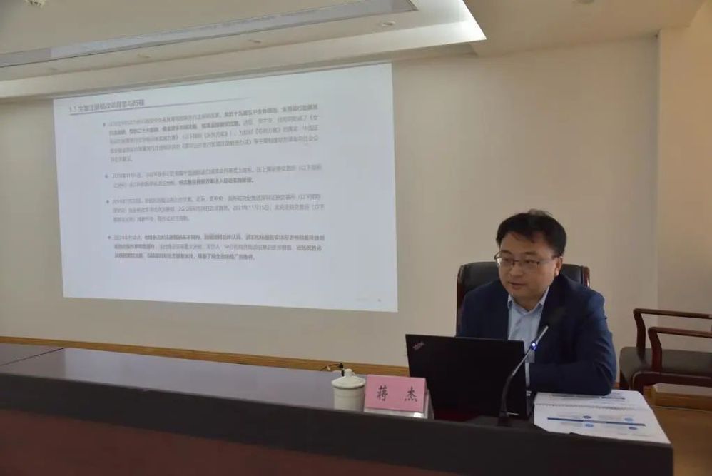 國泰君安證券公司蔣杰以《全面注冊制制度規(guī)則解讀》為題,介紹了全面注冊制改革總體情況和交易所審核、證監(jiān)會注冊程序,他以主板上市公司為例,對IPO規(guī)則、再融資要點、并購重組、上市公司持續(xù)監(jiān)管規(guī)則等方面內(nèi)容進(jìn)行詳細(xì)解讀。