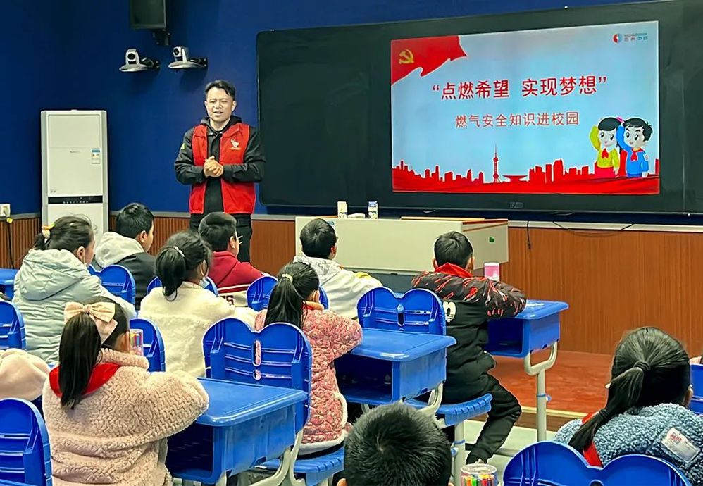 點(diǎn)燃希望,筑夢(mèng)未來(lái)。2023年3月16日上午,揚(yáng)州城控集團(tuán)中燃公司“藍(lán)焰青年”志愿服務(wù)隊(duì)聯(lián)合新聞女生節(jié)目組來(lái)到寶應(yīng)縣西安豐中心小學(xué),開展了以“燃?xì)獍踩嗌佟睘橹黝}的公開活動(dòng)課。