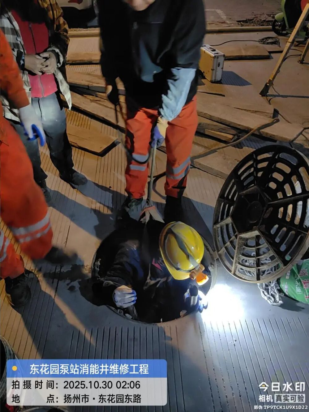 維修工程面臨多重挑戰(zhàn):既要統(tǒng)籌道路交通安全,又要臨時調(diào)度上游10余個泵站的運行工況;既要進行有限空間作業(yè),又要協(xié)調(diào)井外注漿與井內(nèi)粉刷的協(xié)同施工。這種多部門、多環(huán)節(jié)的協(xié)同作業(yè),猶如一場精心編排的“交響樂”,每個環(huán)節(jié)都必須精準配合。