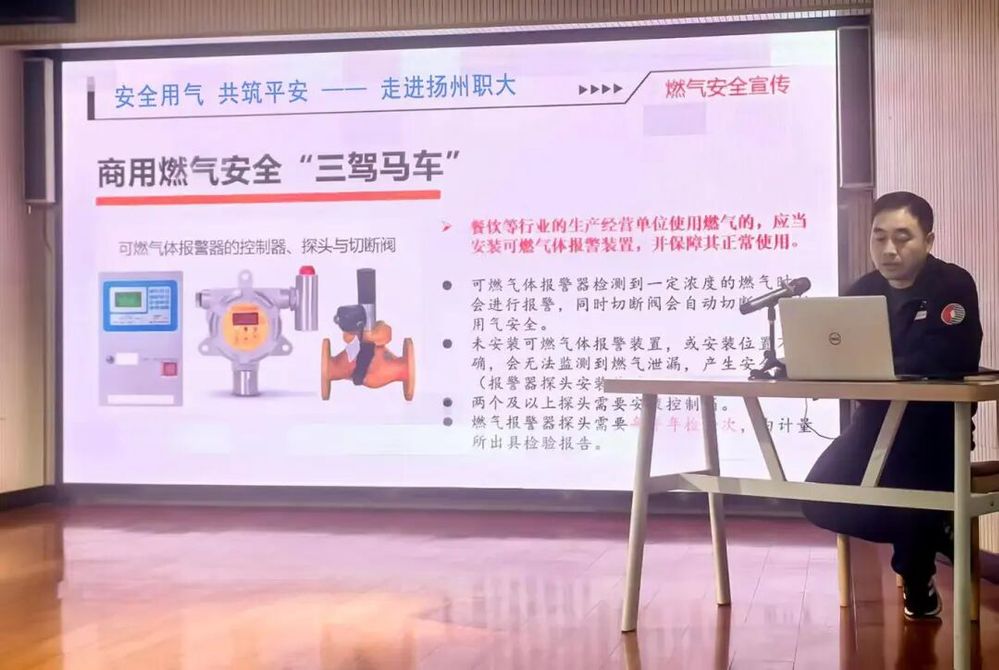 為進(jìn)一步強(qiáng)化校園燃?xì)獍踩芾?,切?shí)提升后勤服務(wù)人員的安全意識(shí)與應(yīng)急處置能力,近日,揚(yáng)州中燃公司聯(lián)合揚(yáng)州職業(yè)技術(shù)大學(xué)組織開展燃?xì)獍踩珜n}培訓(xùn)。揚(yáng)州職業(yè)技術(shù)大學(xué)后勤保障處相關(guān)負(fù)責(zé)人與60余名一線工作人員參加培訓(xùn)。