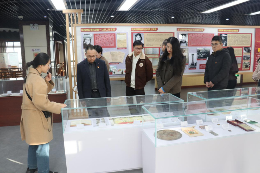 走進主題展廳,“組織動員”“眾志成城”“英勇作戰(zhàn)”“英雄贊歌”四個篇章依次鋪展,百余份歷史照片、文獻資料與珍貴實物,生動再現(xiàn)了75年前志愿軍保家衛(wèi)國的壯闊歷程。黨員干部們駐足凝視、認(rèn)真聆聽,揚州籍烈士的戰(zhàn)功名錄里,是故土兒女的熱血赤誠,志愿軍特級英雄楊根思“抱起炸藥包與敵同歸于盡”的壯舉,盡顯以身許國的決絕;空戰(zhàn)勇士吳奇犧牲前的最后一封家書,藏著對家國的牽掛與不舍;上甘嶺戰(zhàn)役中孫子明舍生忘死的沖鋒,刻著無畏向前的勇毅。泛黃的史料與鮮活的事跡,既生動詮釋了“祖國和人民利益高于一切”的精神內(nèi)核,也讓大家深刻領(lǐng)會了志愿軍的愛國主義、革命英雄主義與國際主義精神。