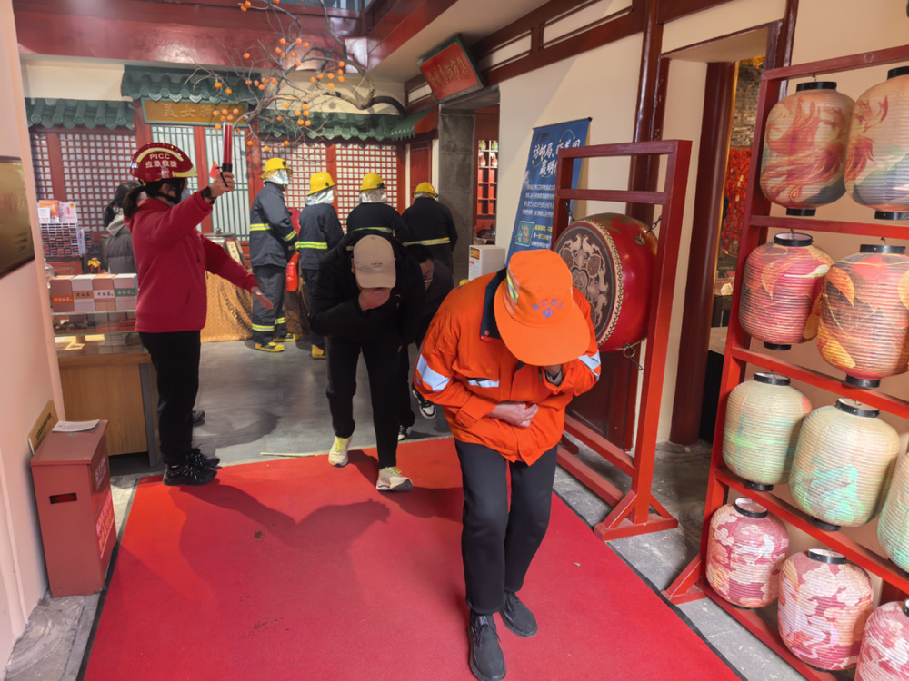 首先,組織參訓(xùn)人員進行了電氣火災(zāi)滅火疏散實操演練,模擬場景為東關(guān)街98號冬榮園發(fā)生火情,當(dāng)班人員發(fā)現(xiàn)并大聲呼救、報警,醫(yī)療救護組人員接到應(yīng)急預(yù)案啟動指令后攜帶應(yīng)急救護物資,對現(xiàn)場受傷人員進行了臨時救護。同時,滅火組第一時間趕赴微型消防站,穿戴消防戰(zhàn)斗服,使用滅火器進行滅火,演練過程中,隊員們聽從指揮、統(tǒng)一調(diào)動、密切配合,充分檢驗了員工及商戶面對電氣火災(zāi)的應(yīng)急處置能力和協(xié)同作戰(zhàn)水平。