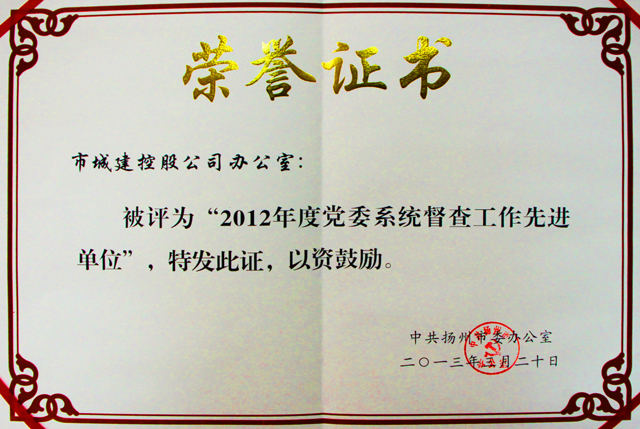 5月20日上午,在全市黨委系統(tǒng)督查重大項目推進會議上,集團辦公室榮獲了2012年度全市黨委系統(tǒng)督查工作先進單位稱號。