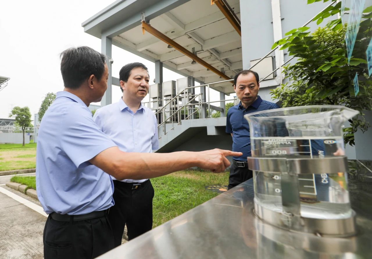 在六圩污水處理廠,夏正東實(shí)地察看了出水泵房、光伏電站等生產(chǎn)區(qū)域,詳細(xì)了解企業(yè)項(xiàng)目運(yùn)營(yíng)、污水管網(wǎng)現(xiàn)狀、廠區(qū)運(yùn)行調(diào)控、綠色循環(huán)經(jīng)濟(jì)產(chǎn)業(yè)鏈等情況。