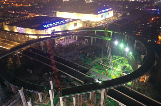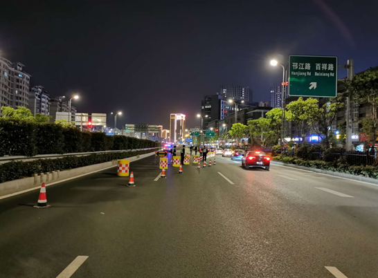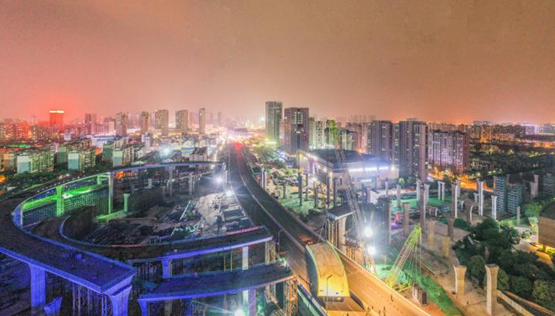 2020年5月7日 21點(diǎn)跨江陽(yáng)路段高架鋼箱梁開(kāi)始吊裝。