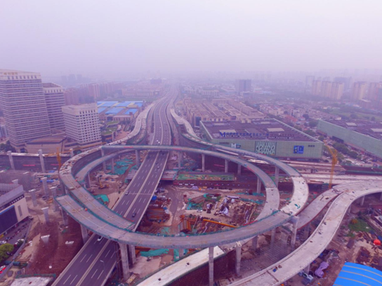潤(rùn)揚(yáng)路快速化改造工程(潤(rùn)揚(yáng)路-江陽(yáng)路互通立交)鋼箱梁共計(jì)9聯(lián),包括主線1聯(lián),匝道8聯(lián),全長(zhǎng)904米,重達(dá)5464噸。其中主線鋼箱梁下穿揚(yáng)州南部快速通道,8聯(lián)匝道鋼箱梁高低跌錯(cuò),與現(xiàn)澆箱梁完美結(jié)合,形成渦輪型互通立交。全橋鋼箱梁分為65個(gè)節(jié)段進(jìn)行吊裝,本次吊裝的最后一段鋼箱梁長(zhǎng)16.7米、寬3.31米、高0.84米、重20噸。