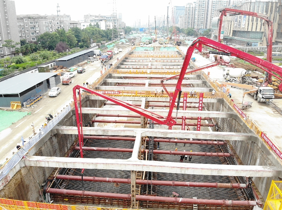 為確保首段底板順利澆筑,項(xiàng)目部精心組織,高度重視,提前召開方案討論會,進(jìn)行專項(xiàng)安全和技術(shù)交底,明確混凝土澆筑方法、注意事項(xiàng)、強(qiáng)度、配合比及養(yǎng)護(hù)措施等,完成防水層安裝、鋼筋綁扎、模板安裝等前置施工工序,為首段底板澆筑提供先決條件。