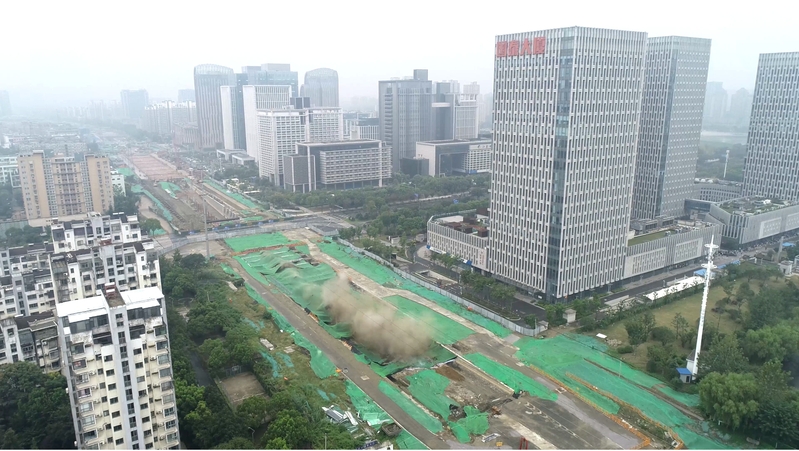 潤揚(yáng)路下穿文昌西路隧道長418米,是揚(yáng)州市區(qū)首條機(jī)動(dòng)車下穿通道。因原隧道不能滿足潤揚(yáng)快速路道路通行要求,根據(jù)潤揚(yáng)路快速化改造工程施工方案及進(jìn)度安排,需對(duì)原文昌西路隧道進(jìn)行拆除擴(kuò)建。此次爆破拆除的隧道底板厚約1.2米,機(jī)械拆除大約需要40天,且噪音持續(xù)時(shí)間長,通過爆破方式拆除隧道,可以節(jié)約近一半的時(shí)間。本次爆破為下一步機(jī)械拆除創(chuàng)造了良好的破碎條件。城控集團(tuán)董事長葉善祥、總經(jīng)理夏正東參與現(xiàn)場指揮。