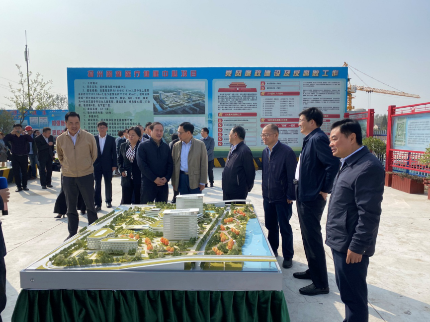 10月22日上午,市人大常委會(huì)副主任沙志芳、范天恩和秘書(shū)長(zhǎng)劉曉明一行赴揚(yáng)州頤和醫(yī)療健康中心項(xiàng)目施工現(xiàn)場(chǎng)進(jìn)行調(diào)研,市衛(wèi)健委主要負(fù)責(zé)人陪同調(diào)研。城控集團(tuán)總經(jīng)理夏正東、副總經(jīng)理方璇智和置業(yè)公司相關(guān)人員參加活動(dòng)。