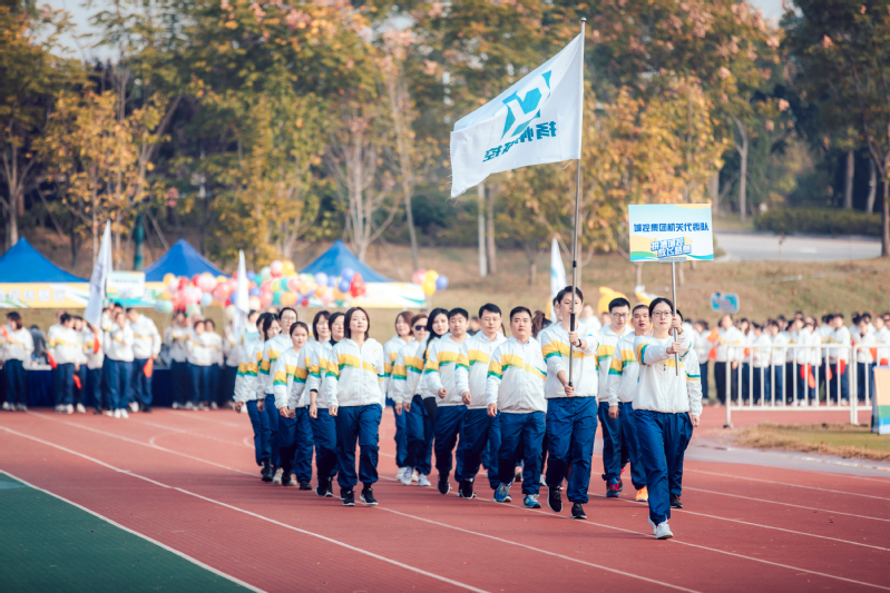 伴隨著節(jié)奏鮮明的《運動員進(jìn)行曲》,儀仗隊員護(hù)擁著鮮艷的五星紅旗、集團(tuán)旗、二十周年旗,引領(lǐng)著精神抖擻的各代表隊運動員方隊步伐矯健地走進(jìn)體育場,運動會在莊嚴(yán)的國歌聲中拉開序幕。