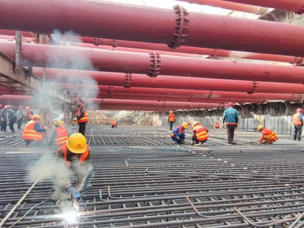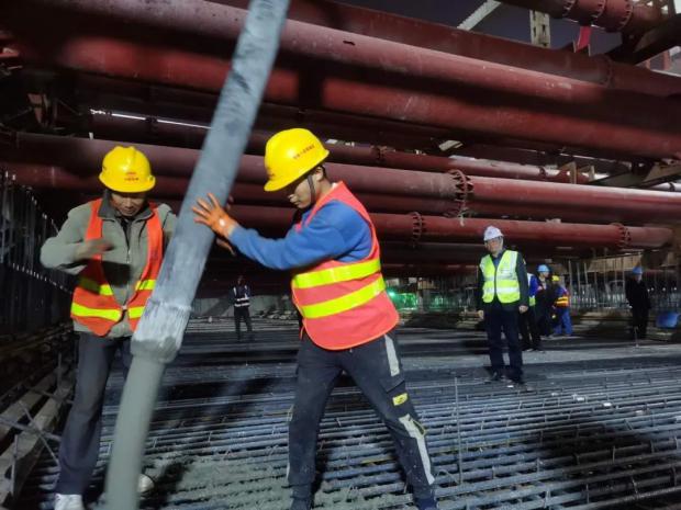 為保證首塊底板優(yōu)質(zhì)高效完成澆筑,項目部高度重視施工安全和工程質(zhì)量,并充分做好施工前各項準(zhǔn)備工作。一是確保項目管理人員和作業(yè)人員安全、技術(shù)交底到位;二是落實領(lǐng)導(dǎo)帶班制、旁站制及三檢制,嚴(yán)把混凝土原材料質(zhì)量關(guān),澆筑過程中技術(shù)人員全程盯控,嚴(yán)格按照施工工藝施工,實現(xiàn)質(zhì)量控制目標(biāo);三是安全員從過程上嚴(yán)格監(jiān)督安全隱患,堅持早發(fā)現(xiàn)、早報告、早解決,做好安全防范工作。