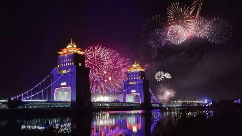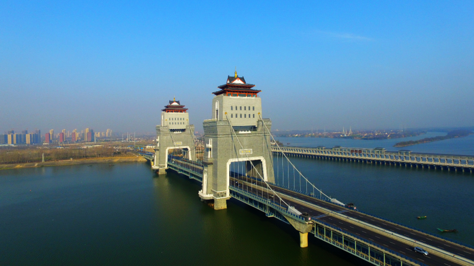 新建萬福大橋是我國首座塔梁古建相結(jié)合的雙層景觀橋,也是揚州城市新地標。大橋全長664米,主跨188米,橫跨淮河入江水道主河道廖家溝。主橋為雙塔自錨式懸索橋,橋型融現(xiàn)代美與古典美于一體,總體風(fēng)格為亭臺樓閣,設(shè)計獨特新穎,造型古樸典雅,與揚州城市歷史悠久、文化燦爛的厚重氣質(zhì)相得益彰。登上塔樓俯瞰,南面的長江和夾江,北面的邵伯湖和高郵湖,壯闊的江淮生態(tài)大走廊一覽無余;江都老城和揚州古城,廣陵新城和生態(tài)科技新城也都盡收眼底。新建萬福大橋就像揚州的“眼睛”一般,因此被譽為“揚州眼”。