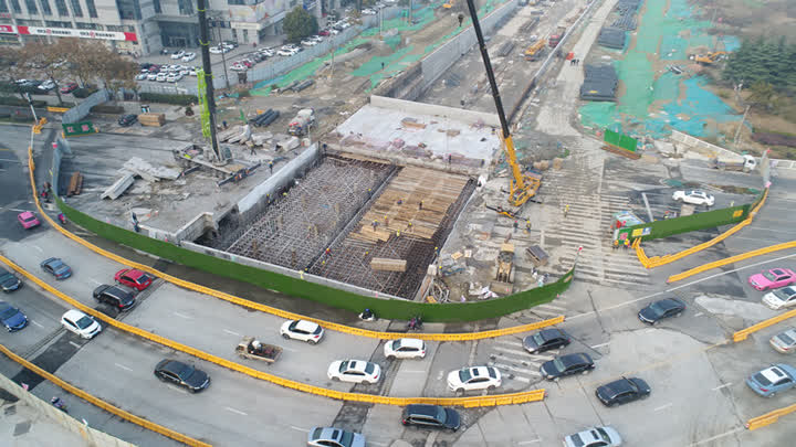 為了保證工程進(jìn)度,確保文昌中路東西向車(chē)流暢通,為市民出行提供方便,今年5月20日蓋板正式投入使用。它所撐起的工作面,為隧道主體結(jié)構(gòu)施工提供了寶貴的作業(yè)時(shí)間。目前,工程已進(jìn)入頂板澆筑階段,需對(duì)原有蓋板進(jìn)行拆除。為了按時(shí)完成拆除任務(wù),項(xiàng)目部調(diào)用了220T汽車(chē)吊輔助施工,并安排兩班工人輪班施工,負(fù)責(zé)人現(xiàn)場(chǎng)緊盯蓋板拆除全過(guò)程,確保施工質(zhì)量與安全。