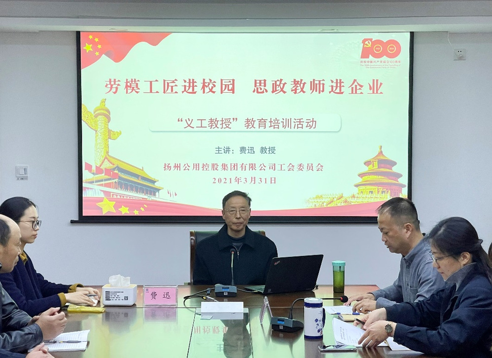 為慶祝建黨100周年,深入開展黨史學(xué)習(xí)教育,3月31日下午,公用控股集團(tuán)舉辦“思政教師進(jìn)企業(yè)”活動(dòng),特邀揚(yáng)州大學(xué)馬克思主義學(xué)院教授費(fèi)迅作專題講座,公司全體干部員工參加活動(dòng)。