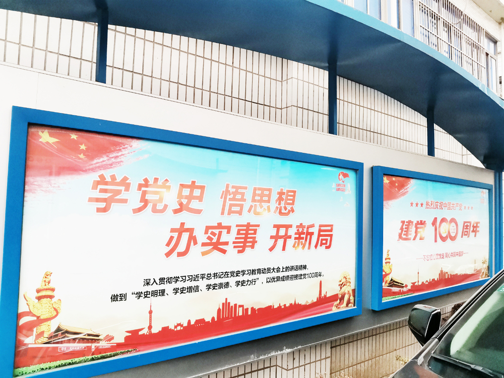 為全面扎實(shí)推進(jìn)黨史學(xué)習(xí)教育,長(zhǎng)江水務(wù)公司結(jié)合實(shí)際,對(duì)公司大院的宣傳欄進(jìn)行了更新,宣傳欄內(nèi)容主要圍繞“黨史十個(gè)關(guān)鍵詞”和“回顧中共一大至十九大”展開,內(nèi)容豐富、制作精美,圖文并茂地展示了中國(guó)共產(chǎn)黨波瀾壯闊的百年奮斗史以及全部的發(fā)展歷程,不僅打造了長(zhǎng)江水務(wù)專屬的黨史教育長(zhǎng)廊,而且通過(guò)耳目一新的宣傳內(nèi)容,潛移默化的教育形式營(yíng)造了濃厚的紅色氛圍。