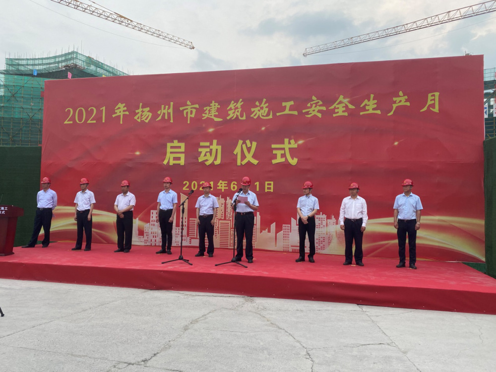 今年6月是全國第20個(gè)“安全生產(chǎn)月”,為切實(shí)抓好建筑施工各項(xiàng)安全生產(chǎn)宣傳教育工作,6月1日下午,揚(yáng)州市“建筑施工安全生產(chǎn)月”啟動儀式在揚(yáng)州頤和醫(yī)療健康中心項(xiàng)目現(xiàn)場順利舉行。市政府副秘書長林寶榮、市住建局局長陶伯龍、城控集團(tuán)副董事長戚磊出席活動,市住建局各處室代表、各縣(市、區(qū))、功能區(qū)住建局分管負(fù)責(zé)人、市安監(jiān)站、市應(yīng)急管理局主要負(fù)責(zé)人、市區(qū)主要施工企業(yè)及市管在建重點(diǎn)工程施工單位項(xiàng)目負(fù)責(zé)人、頤和項(xiàng)目建設(shè)和施工單位負(fù)責(zé)人參加活動。