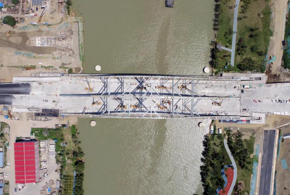 跨京杭運(yùn)河大橋是萬(wàn)??焖俾饭こ讨仉y點(diǎn)及控制性節(jié)點(diǎn)工程,施工難度大、精度要求高,決定著整個(gè)工程關(guān)門(mén)工期。施工過(guò)程中涉及的鋼棧橋施工、深基坑施工及上部結(jié)構(gòu)吊裝均為超過(guò)一定規(guī)模的危險(xiǎn)性較大的分部分項(xiàng)工程,施工安全風(fēng)險(xiǎn)高。為確保按期完成,錢(qián)俊多次組織召開(kāi)專(zhuān)題推進(jìn)會(huì),倒排工期,掛圖作戰(zhàn),制定詳細(xì)的施工計(jì)劃,出現(xiàn)偏差及時(shí)分析并修正調(diào)整;同時(shí),加強(qiáng)與海事、航道、船閘等部門(mén)的對(duì)接協(xié)調(diào),確保鋼構(gòu)件及時(shí)進(jìn)場(chǎng)、及時(shí)封航吊裝。施工期間,每天安排專(zhuān)人對(duì)施工部位進(jìn)行巡查,檢查措施落實(shí)情況,針對(duì)發(fā)現(xiàn)的問(wèn)題及時(shí)組織各方商討最佳解決方案,優(yōu)化施工工藝。在全體參建人員的共同努力下,2021年1月27日,跨京杭運(yùn)河大橋拱肋全部合龍;2021年4月16日,跨京杭運(yùn)河大橋橋面板合攏......目前,萬(wàn)??焖俾饭こ陶凑占榷ㄓ?jì)劃順利推進(jìn),工程形象進(jìn)度完成率近90%。