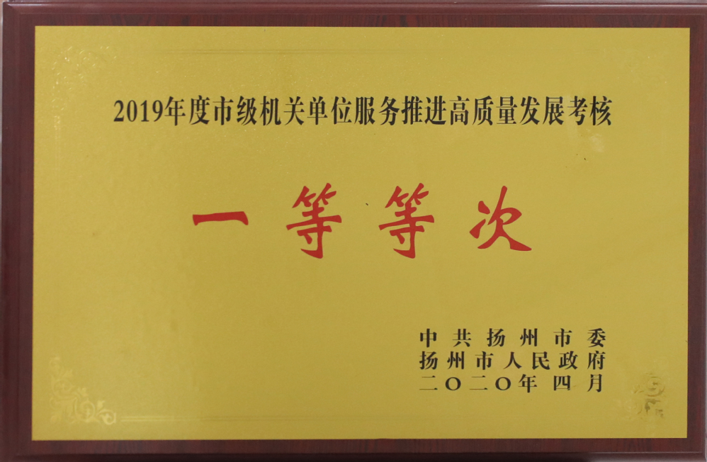 2019年度市級機關(guān)單位服務(wù)推進高質(zhì)量發(fā)展考核一等等次