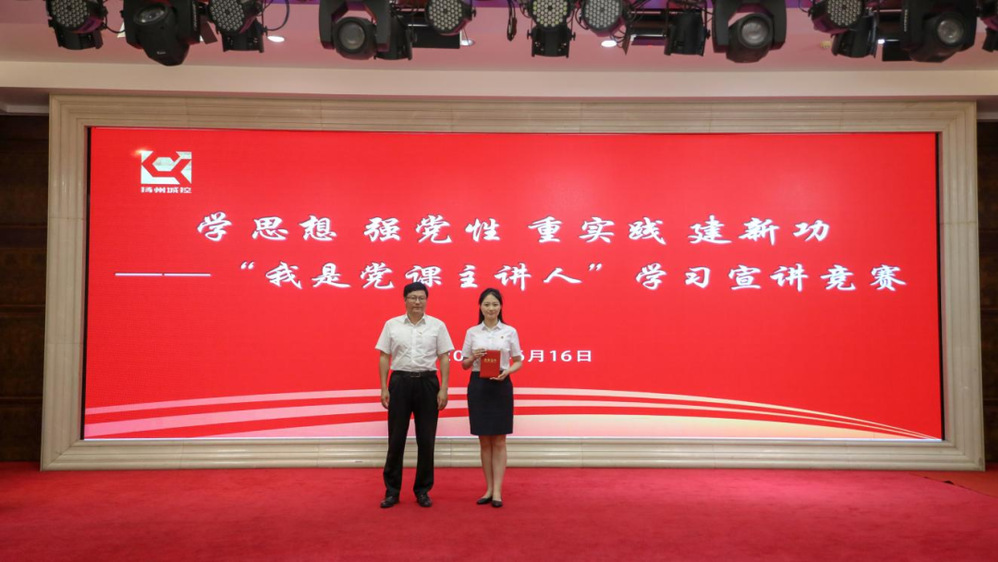 為進(jìn)一步推動習(xí)近平新時代中國特色社會主義思想深入基層、深入人心,更好激勵廣大干部群眾在新時代新征程上踔厲奮發(fā)、勇毅前行,6月16日下午,集團(tuán)黨委舉辦了“學(xué)思想 強(qiáng)黨性 重實(shí)踐 建新功——我是黨課主講人”學(xué)習(xí)宣講競賽。市委黨建辦副主任孫明,揚(yáng)州市職業(yè)大學(xué)黨委委員、宣傳部部長花軍,市委黨校培訓(xùn)處處長丁健,市國資委黨群處處長徐根亮、集團(tuán)黨委副書記徐飛出席活動并擔(dān)任評委。集團(tuán)領(lǐng)導(dǎo)班子成員、集團(tuán)機(jī)關(guān)黨支部書記、機(jī)關(guān)部室主要負(fù)責(zé)人、下屬單位黨組織主要負(fù)責(zé)人、分管負(fù)責(zé)人、基層黨務(wù)工作者約100人參加活動。