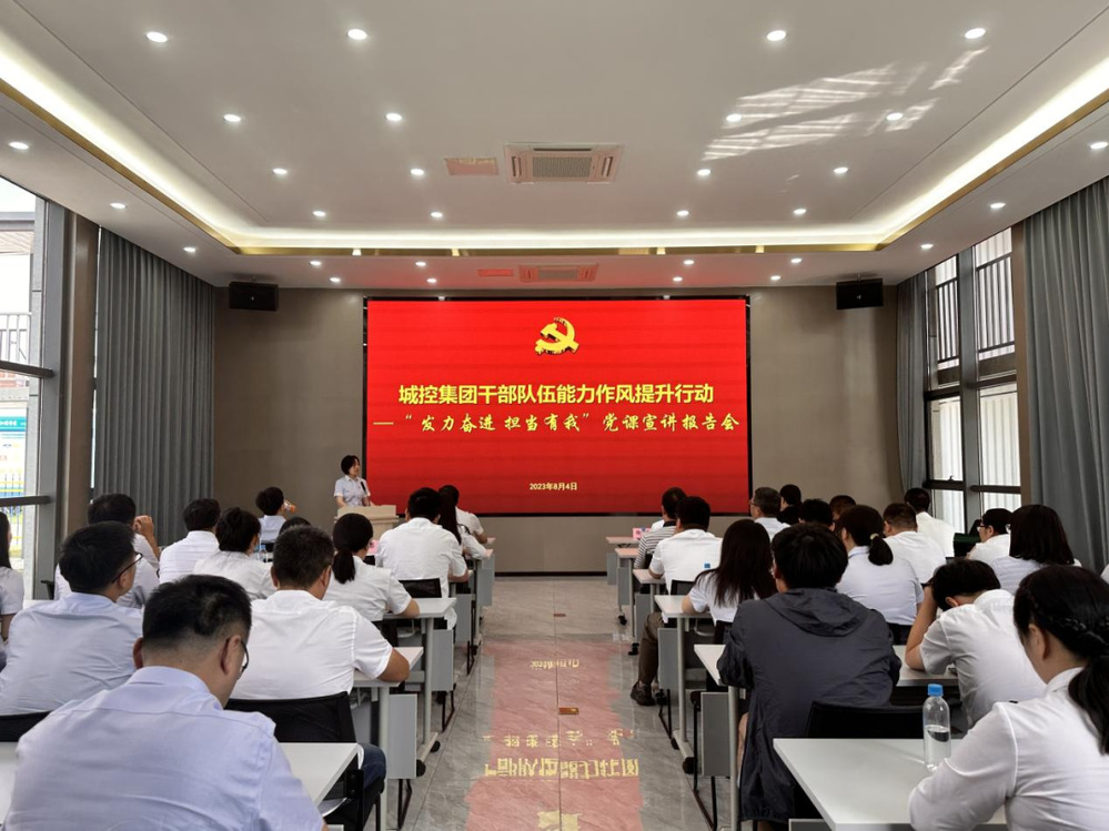 為深入學(xué)習(xí)貫徹習(xí)近平新時代中國特色社會主義思想和黨的二十大精神,切實提升集團干部隊伍能力作風(fēng)建設(shè),8月4日上午,集團在城建置業(yè)公司天璟融園項目部舉辦了第一場“發(fā)力奮進 擔當有我”黨課宣講報告會。集團黨委副書記徐飛、集團黨群部負責人,城建置業(yè)公司領(lǐng)導(dǎo)班子成員、各部門負責人、全體黨員,天璟融園項目參建、聯(lián)建單位黨員代表共計50余人參加活動。