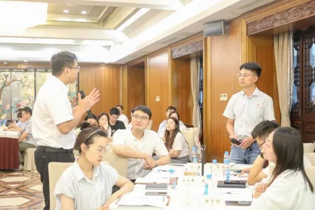 在之后的我點你答和分組討論環(huán)節(jié),大家圍繞文旅融合發(fā)展、街區(qū)運營、綠色低碳新業(yè)態(tài)、大運河十里外灘和小秦淮河項目建設(shè)等話題展開討論,并就推動集團及自己所在企業(yè)的高質(zhì)量發(fā)展獻出妙計良策,現(xiàn)場氛圍活躍,與會青年代表踴躍發(fā)言,紛紛提出自己的看法。集團領(lǐng)導針對青年代表的精彩發(fā)言,現(xiàn)場與青年代表們深入交流互動。