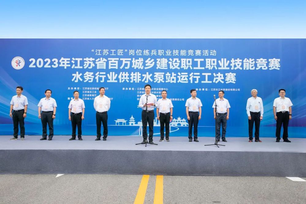 9月13日至14日,2023年江蘇省百萬(wàn)城鄉(xiāng)建設(shè)職工職業(yè)技能競(jìng)賽水務(wù)行業(yè)供排水泵站運(yùn)行工決賽在揚(yáng)州成功舉辦,城控集團(tuán)作為承辦單位,在長(zhǎng)江水務(wù)第一水廠舉行競(jìng)賽開幕式,省住房和城鄉(xiāng)建設(shè)廳城市建設(shè)處處長(zhǎng)張躍峰出席開幕式并宣布比賽開幕,揚(yáng)州城控集團(tuán)黨委書記、董事長(zhǎng)張思忠,副總經(jīng)理周平出席開幕式。