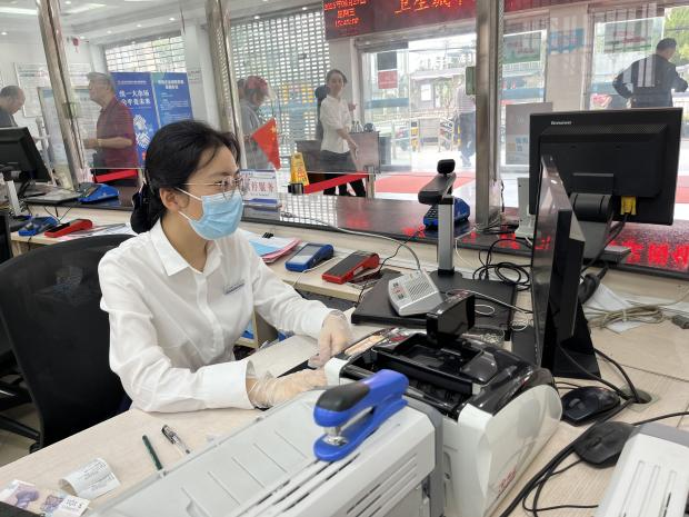 “十一”國(guó)慶當(dāng)天,營(yíng)業(yè)所大廳柜員吳玉瑩一早就提前到崗,整理好上班期間需要用的現(xiàn)金、票據(jù)。大廳正式進(jìn)入營(yíng)業(yè)時(shí)間后,吳玉瑩面帶微笑地迎接每一位進(jìn)入大廳辦理業(yè)務(wù)的用戶(hù),用熱情高質(zhì)的服務(wù)守護(hù)用戶(hù)歡樂(lè)祥和過(guò)節(jié)。