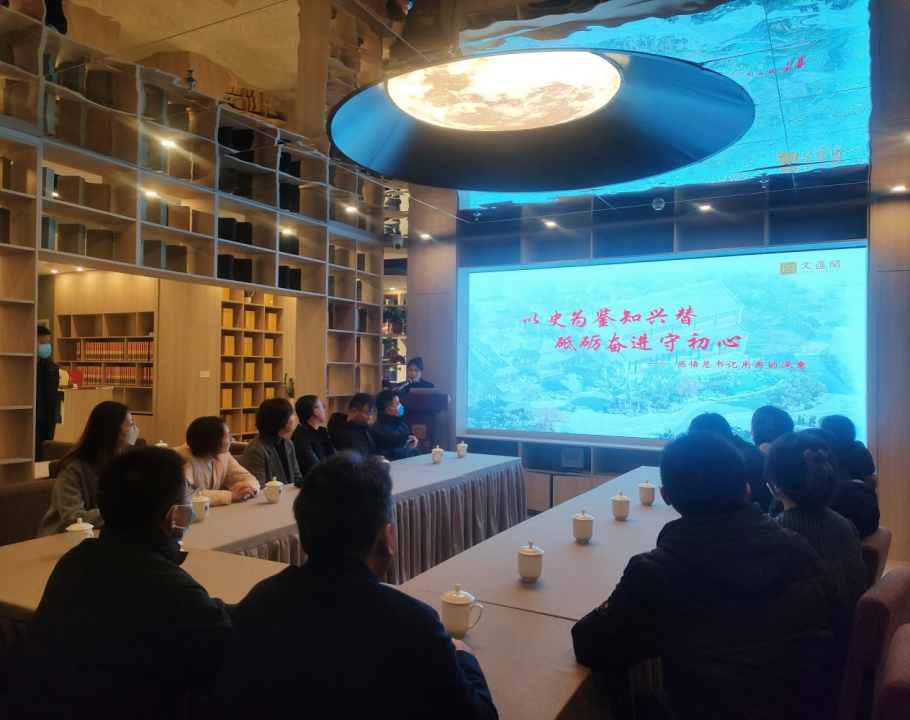 在講解員的帶領(lǐng)下,大家參觀了一樓歷史文化展陳區(qū),通過(guò)“依靠學(xué)習(xí),走向未來(lái)”主題學(xué)習(xí)平臺(tái),學(xué)習(xí)了“信念篇”“勸學(xué)篇”“修身篇”“齊家篇”“民本篇”“勤廉篇”六個(gè)篇章的相關(guān)內(nèi)容,學(xué)習(xí)感悟習(xí)近平總書記在系列重要講話中所引用的《四庫(kù)全書》中的經(jīng)典語(yǔ)句,深刻領(lǐng)悟習(xí)近平總書記關(guān)于黨風(fēng)廉政建設(shè)和反腐敗斗爭(zhēng)的重要論述。隨后,文匯閣青年黨員以《以史為鑒知興替 砥礪奮進(jìn)守初心》為題為大家上了一堂生動(dòng)的專題黨課。