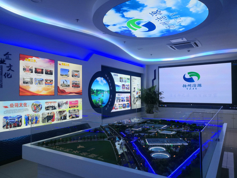 揚州潔源節(jié)水科教館硬件設(shè)施由揚州潔源環(huán)境公司傾力打造,共設(shè)有1個總館和3個分館。室內(nèi)展廳內(nèi)設(shè)有2套廠區(qū)布局沙盤、3套宣傳大屏、2套宣傳滾動屏、1套人機互動觸摸屏、1套交互式答題機等多媒體設(shè)施。室外設(shè)施主要涵蓋污水預處理、生物處理和提標段處理、中水回用等污水處理設(shè)施。