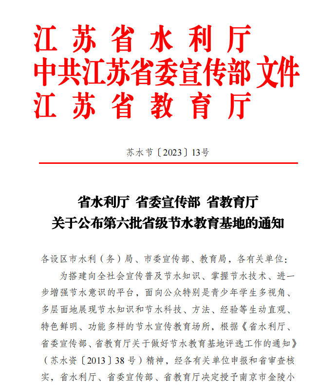 近日,由省水利廳、省委宣傳部和省教育廳聯(lián)合發(fā)文,揚州潔源節(jié)水科教館順利通過評選驗收,成功入選第六批省級節(jié)水教育基地。