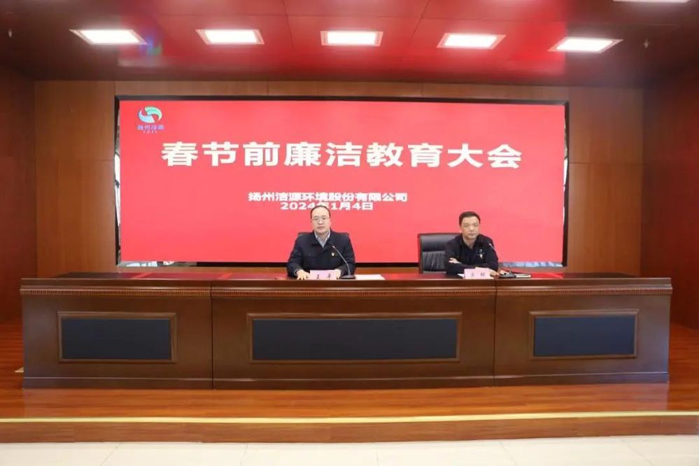1月4日下午,潔源環(huán)境公司召開春節(jié)前廉潔教育大會(huì),公司領(lǐng)導(dǎo)班子全體成員、全體中層干部及助理、重點(diǎn)崗位人員和供應(yīng)商代表參加會(huì)議。