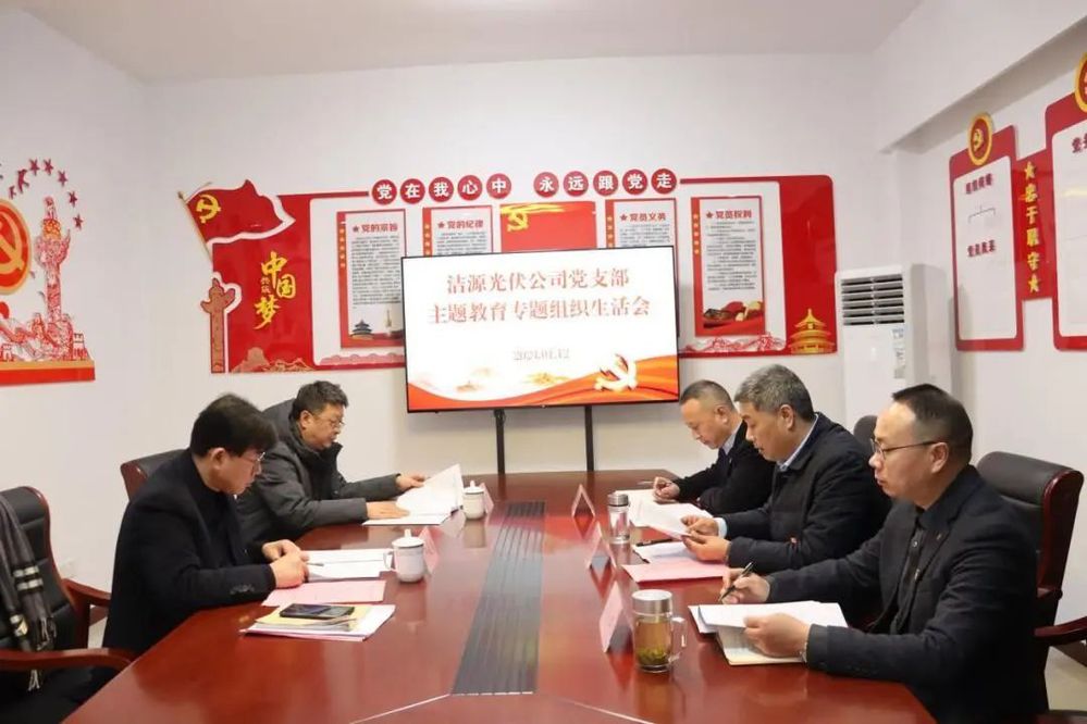 1月12日,潔源光伏公司黨支部召開主題教育專題組織生活會,集團(tuán)黨委委員、總工程師嚴(yán)俊泉帶隊(duì)到會指導(dǎo),公司領(lǐng)導(dǎo)班子成員參加會議。
