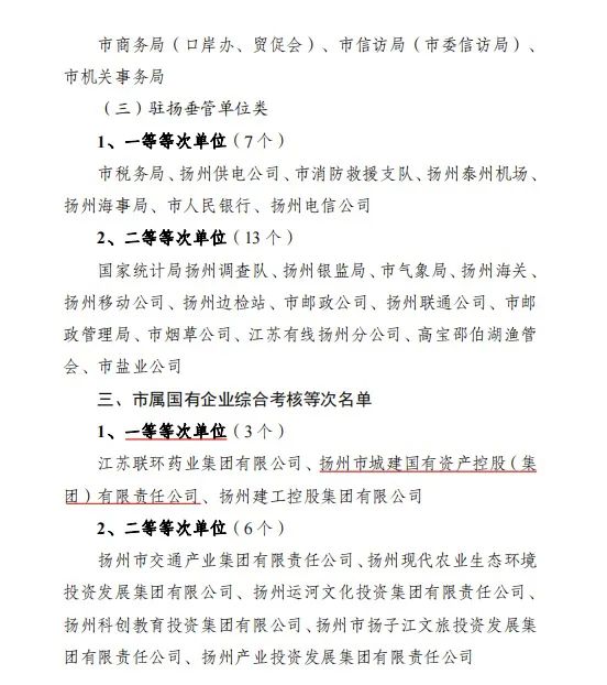 4月3日上午,市委、市政府召開全市2023年度高質(zhì)量發(fā)展總結(jié)暨2024年工作推進(jìn)會(huì)議,通報(bào)了全市市級機(jī)關(guān)單位2023年度綜合考核結(jié)果,揚(yáng)州城控集團(tuán)榮獲2023年度市屬國有企業(yè)綜合考核一等等次。自2017年以來,集團(tuán)已連續(xù)7年、歷史第10次被評為市級機(jī)關(guān)單位綜合考核一等等次。