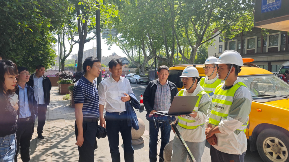 4月25日上午,江蘇省城市生命線安全工程建設(shè)推進工作領(lǐng)導(dǎo)小組領(lǐng)導(dǎo)在鹽阜路雷達空洞探測現(xiàn)場,實地調(diào)研揚州市政管網(wǎng)公司雷達空洞探測工作開展情況,并給予技術(shù)指導(dǎo)。