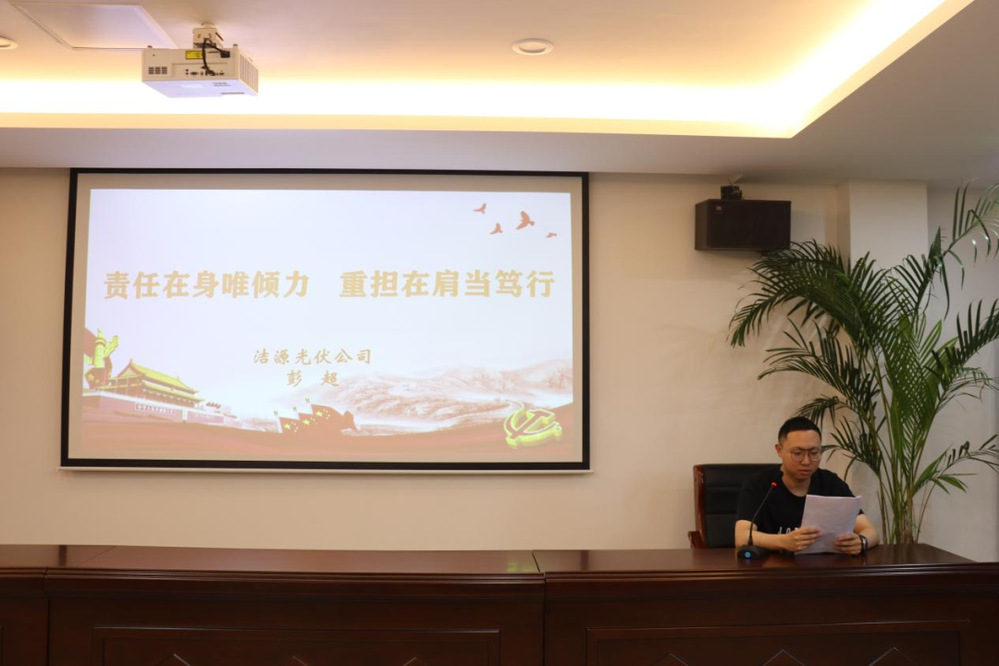 為深入學(xué)習(xí)貫徹習(xí)近平新時代中國特色社會主義思想和黨的二十大精神,引導(dǎo)干部職工以講促學(xué)、以學(xué)促干,5月30日下午,潔源光伏公司黨支部組織開展“我是黨課主講人”學(xué)習(xí)宣講活動,全體黨員參加活動。